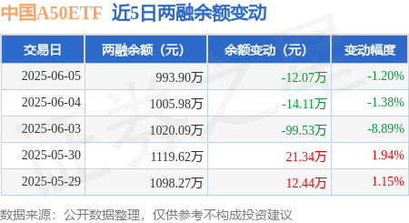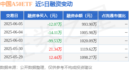 中国A50ETF:6月5日融资买入36.57万元,融资融券余额993.9万元